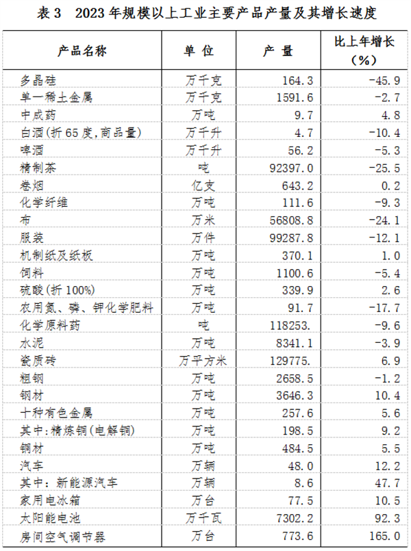 全年规模以上工业中,分行业看,有色金属冶炼和压延加工业增加值比上年增长20.0%,电气机械和器材制造业增长18.5%,化学原料和化学制品制造业增长13.3%,黑色金属冶炼和压延加工业增长17.1%,汽车制造业增长10.1%,战略性新兴产业、高新技术产业、装备制造业增加值分别增长9.1%、9.1%、10.0%,占规模以上工业比重分别为28.1%、39.5%、31.6%。