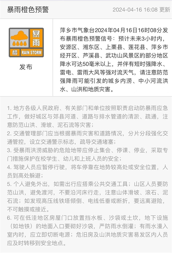 三预警齐发!萍乡市防办提醒 赶紧转给身边人!