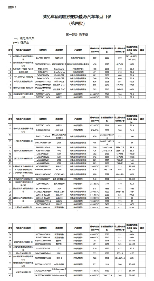 △《减免车辆购置税的新能源汽车车型目录》(第四批)部分截图