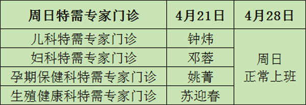 周日特需专家门诊4月排班表