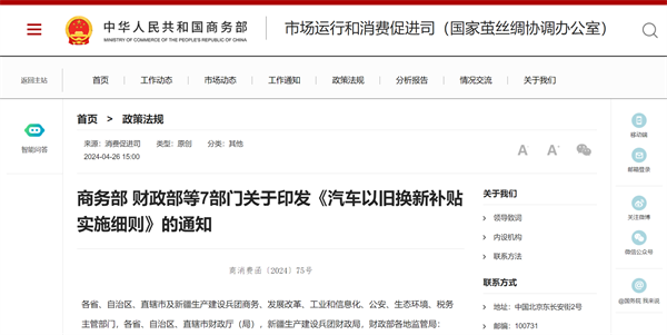 下一步,商务部将会同有关部门,指导各地方落实好补贴政策,加大宣传解读力度,便利消费者参与汽车以旧换新行动,更好满足人民群众美好生活需要。