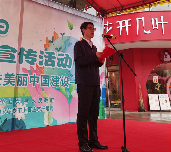 开幕式上,曾育平指出,我们要争做“美丽上栗”宣传者。环境保护人人有责。我们要以今天的活动为契机,广泛宣传环保知识和生态理念,不断用我们的实际行动影响身边的人。我们要争做“美丽上栗”践行者。我们要从现在做起,从自身做起,大力弘扬勤俭节约、绿色低碳、文明健康的生活方式和消费方式,使生态文明建设成为共同理想信念和自觉行动。我们要争做“美丽上栗”守护者。美丽家园需要我们共同来维护,我们要像爱护眼睛一样,爱护一草一木、一山一水,以实际行动为建设清洁美丽上栗贡献力量。