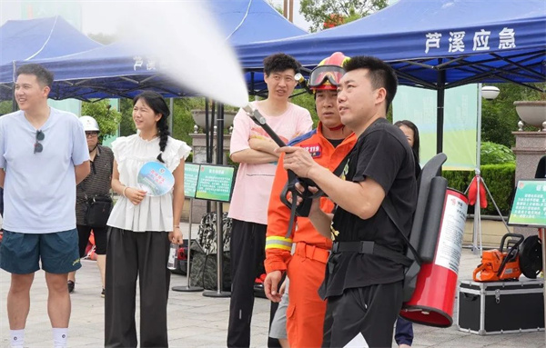 在活动现场,20多家单位和企业设置咨询台,为现场市民群众提供“面对面、零距离、互动式”咨询服务,讲解安全生产法律法规、发放宣传图册、解答安全生产相关知识问题,回应市民群众关注关心的安全生产、公共安全问题。消防应急救援人员在现场为来往市民讲解“智能救生器、割灌机、救生抛投器、背桶式灭火水枪”等20种消防救援设备,让市民们近距离接触,沉浸式体验,在边看、边玩、边学中提升安全意识和技能。