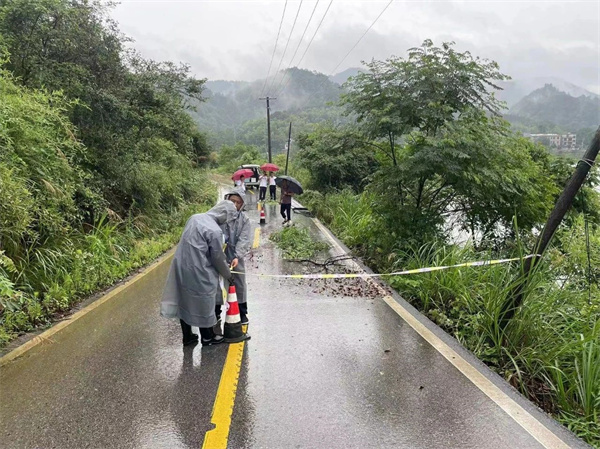 巡查319沿线、市级工业平台挂线及各村主要出行路,对积水路段采取紧急疏通措施,对崩塌滑坡路段予以封闭并设置安全警示标志,提醒过往群众注意安全。