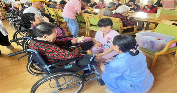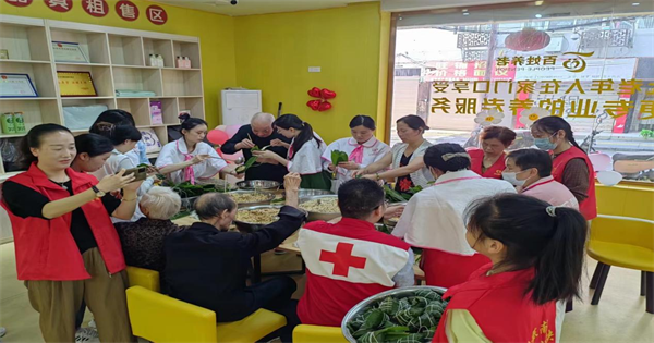 6月7日端午节前夕,萍乡市中医院城南健康管理部与红十字会联手举办“粽情端午,欢乐相伴”主题活动,走进城南健康管理部所在凤凰街百姓养老内的康复区,为康复区的养老院的老人们送上节日的祝福及免费的中医健康义诊服务。