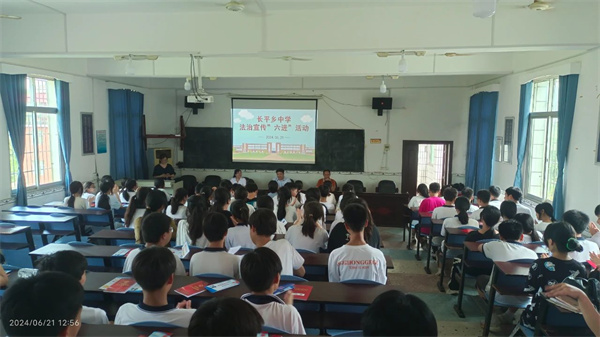 为深入推进法治宣传教育进校园,做好未成年人权益保护和犯罪预防工作,切实护航青少年健康成长,营造安全和谐的校园环境,6月21日,长平乡司法所、团委在长平乡千方小学、长平中学组织开展法治宣传进校园教育活动,为在校师生上了一堂“干货满满”的普法知识课。