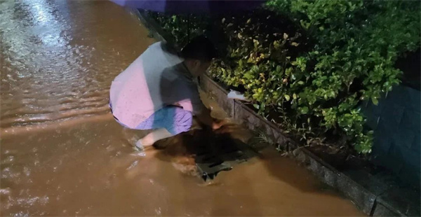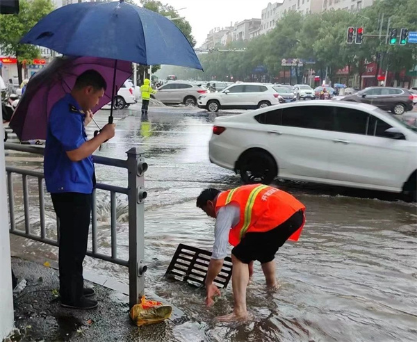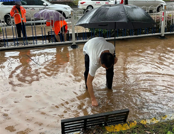 区城市管理服务中心对辖区易发生内涝的地点进行水道管网排查与疏通工作,保障居民生活和出行安全。