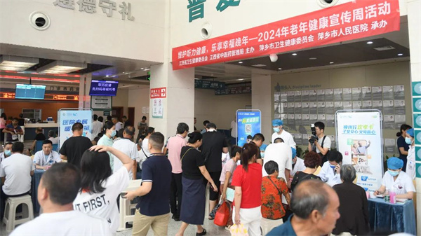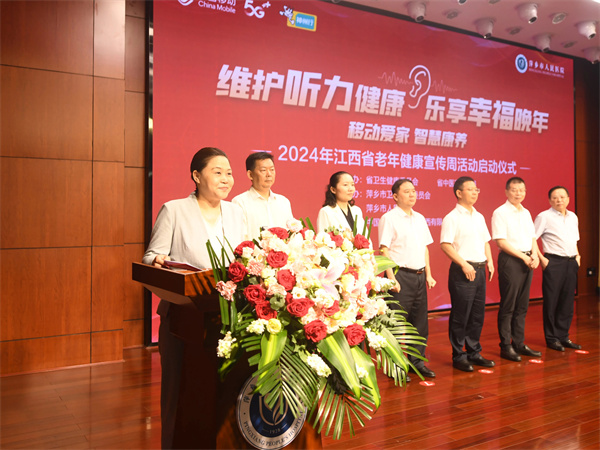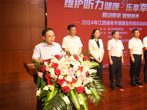 6月24日上午,2024年江西省老年健康宣传周活动在萍乡市人民医院正式启动。今年的活动主题是“维护听力健康,乐享幸福晚年”,活动旨在深入贯彻积极应对人口老龄化国家战略,宣传普及老年健康相关政策和老年健康科学知识,增强老年人健康意识,切实提高全民健康素养和健康水平。