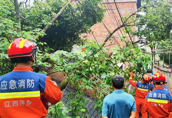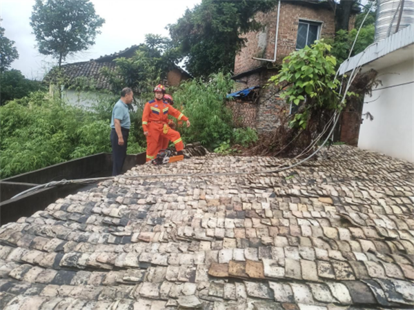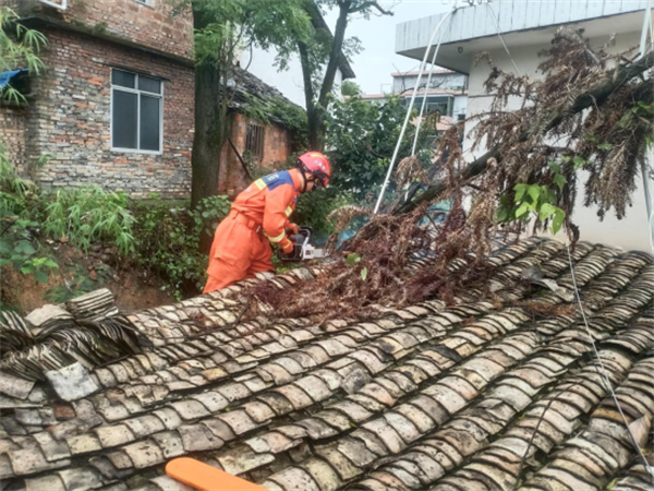 随即,工作人员第一时间和消防部门联系锯除危树,消除安全隐患。下午14时,消防部门到场,先是对现场进行了勘查,制定移除危树方案,其后在确保村民房屋安全前提下,对倒塌的危树进行切割。经过长达两个多小时的切割分离,大树最终被锯断,成功排除了隐患。