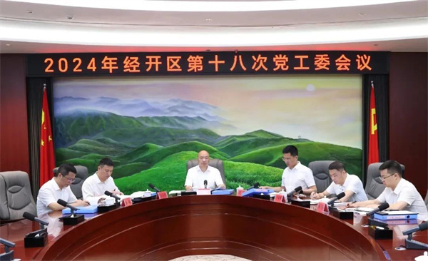 6月28日,2024年经开区第十八次党工委会议召开,传达学习习近平总书记近期重要讲话重要指示精神,研究经开区贯彻落实意见。市委常委、区党工委书记杨博主持会议。区领导刘波、兰子建、李锦辉、朱敏、黄好出席。