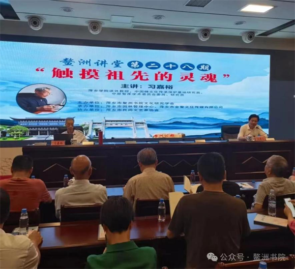6月29日“鳌洲讲堂”第二十八期讲座《触摸祖先的灵魂》如期开讲。本次讲座由萍乡学院退休教授、中国傩文化传承保护基地研究员、中原智库学术委员会委员、研究员习嘉裕主讲。他曾创开过《马克思主义经典作家论文化》课,退休后力求用马克思主义文化人类学观点研究傩文化,公开发表论文多篇。习教授讲座内容详实、故事生动、学术性强,听众掌声不断、收获颇丰。