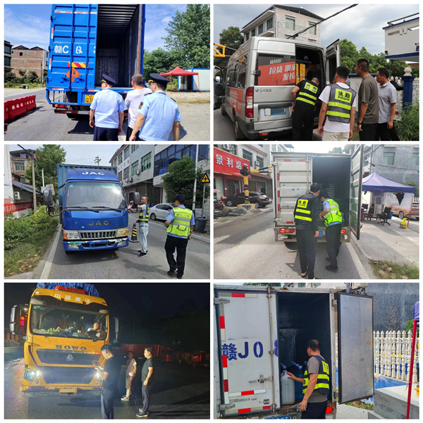 夏日炎炎,在湖塘村和莲台村镇域边界处,排查人员正对来往车辆进行现场盘查、登记,严查非法运输烟花爆竹违法行为。面对滚烫的气温、头顶的烈日,排查人员始终坚守一线履行职责,时刻盯牢来往可疑车辆,24小时不间断轮班执勤排查,以高度的责任感经受住了高温“烤”验。