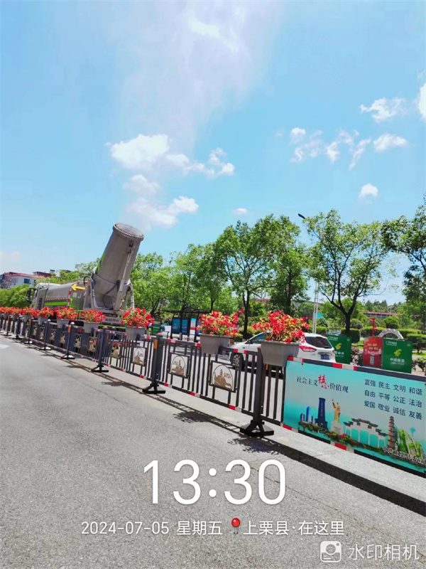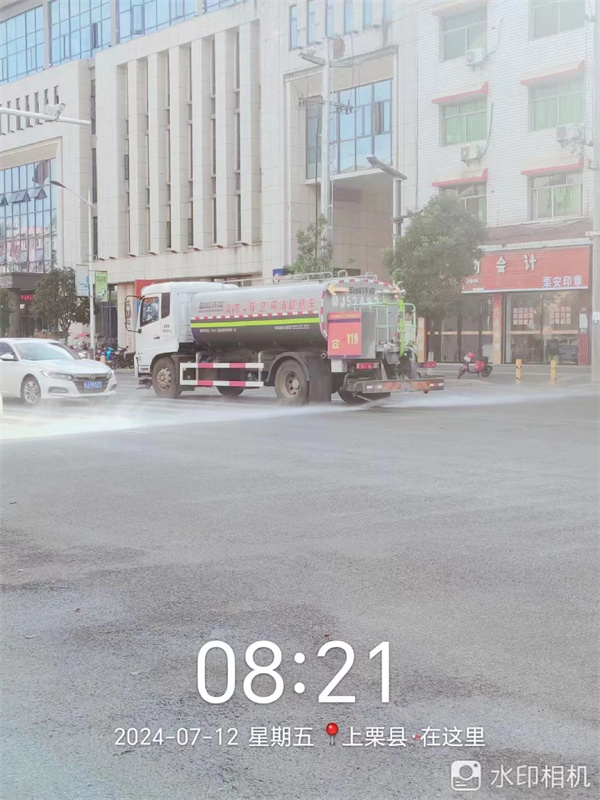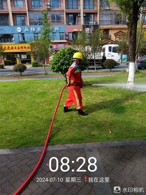 通过科学合理调配车辆,加大道路机械化洗扫作业来提升环卫保洁效率,每日出动洒水车8台、炮雾车2台、洗扫车3台,对路面进行机械清扫、高压冲洗、洒水降尘作业。对主干道、人流量密集、工地污染严重路段加大洒水频次,有效降温除尘、加湿洁净城市路面。