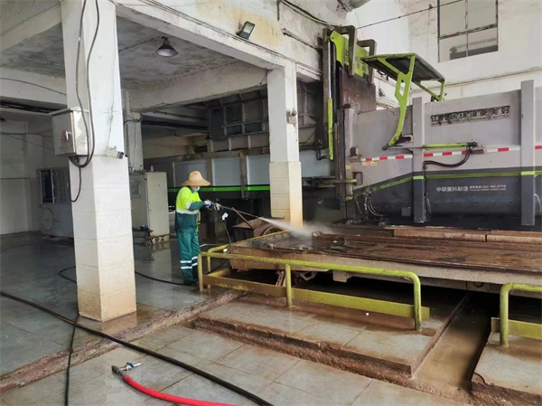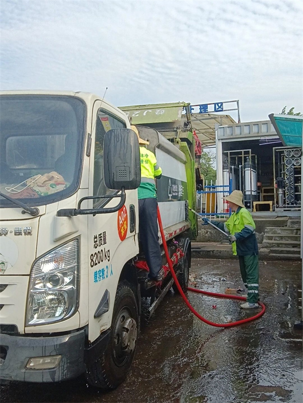 为杜绝中转站“脏、乱、臭”情况的发生,每天对压缩过程中污染的地面、压缩箱体进行冲刷,清除污迹,确保无积存垃圾。