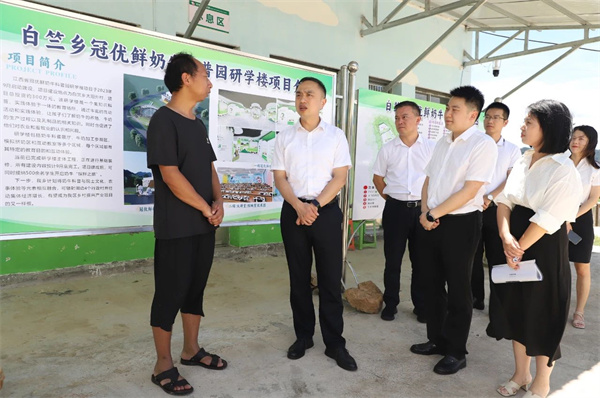 会前,何超还来到白竺乡崇源村桐花谷水上营地、白竺乡冠优鲜奶牛科普园进行实地调研。
