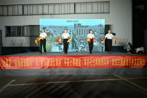 为丰富群众精神文化生活,提高群众法治素养,有效提升人民群众对政法工作和政法部门的知晓率和满意度。7月16日,上栗县“百场政法集市”和“百场政法大宣讲”“平安上栗”建设政法主题送戏下乡文艺演出走进东源乡政府广场,让广大群众在家门口就能欣赏精彩的文艺演出。