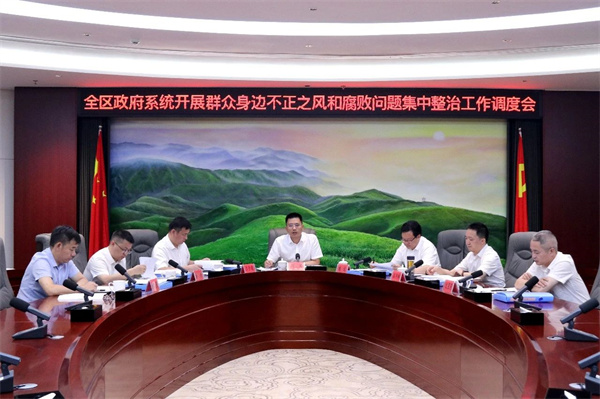 会议套开了全区政府系统群众身边不正之风和腐败问题集中整治工作推进调度会。会议强调,要提高站位,思想认识要再深化,以更加坚定的决心、超常的举措、过硬的作风推动解决一批群众可感可及的实事。要聚焦重点,问题导向要再强化,发扬刀刃向内的自我革命精神,敢于正视问题、善于发现问题,聚焦重点领域、关键环节,持续深挖细查,提升问题排查质量。要统筹推进,系统治理要再优化,真正把“惩”和“治”贯通起来,进一步堵住制度漏洞,加强制度执行,不断规范权力运行。要担当作为,责任链条要再细化,持续加大整治力度,着力解决一批群众急难愁盼问题、查办一批典型案例、完善一批制度机制、提升一轮治理效能。