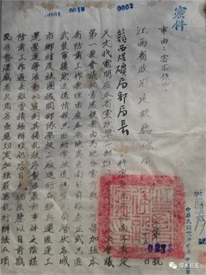 ▶国民党政府密件致函赣西煤矿局成立“保卫小组”负隅顽抗(左);7月18日国民党意图炸毁泉江电厂的报告(右)