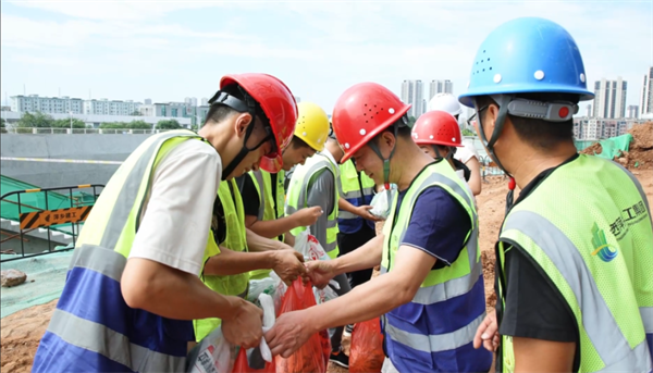 为了克服高温天气对施工带来的不利影响,项目部成立了高温防暑工作小组,合理调整施工时间,避开正午的高温时段。同时,还专门向各施工班组发放西瓜、霍香正气丸、仁丹等防暑物品以及在施工现场不同的地点提供凉茶供应,确保他们在高温下依然能够保持良好的工作状态。