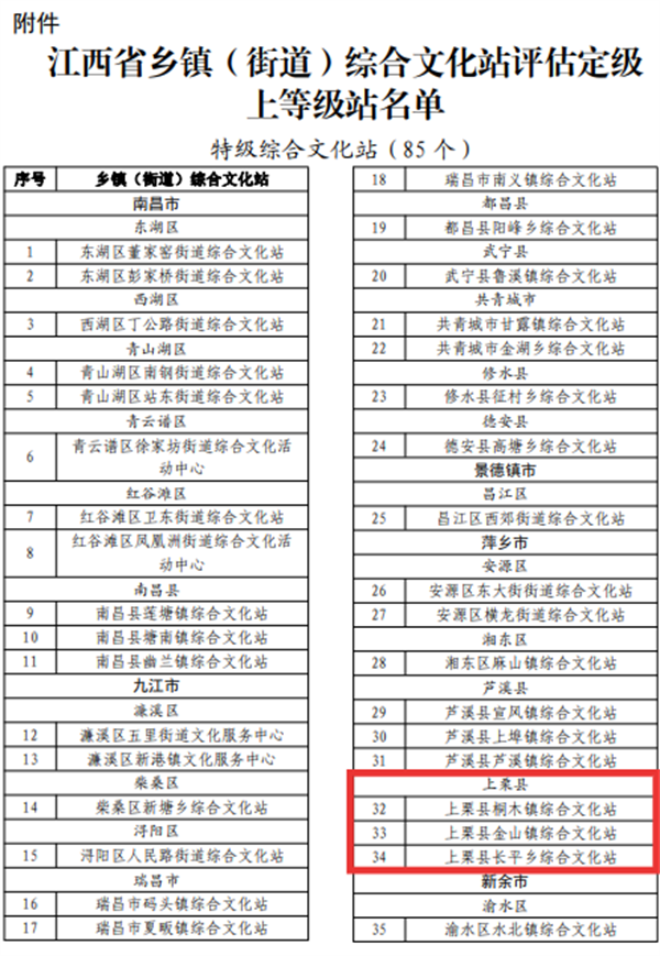 近日,在江西省文化和旅游厅组织开展的全省乡镇(街道)综合文化站评估定级中,上栗县交出亮眼答卷,5个综合文化站获评一级以上。