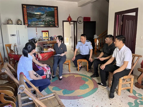 近日,为深入践行新时代“枫桥经验”,进一步推进辖区“11520包户制度”走深走实,切实加强一庭两所联动,不断提升辖区群众的法律意识,安源区法院五陂法庭主动融入社会治理,联动五陂镇派出所、五陂镇司法所、园艺分场,以入户走访和上门讲课的方式送法进乡,打通司法服务群众的“最后一公里”。