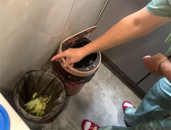 居民对厨余垃圾进行破袋并等待AI分类系统识别是否有混合物。