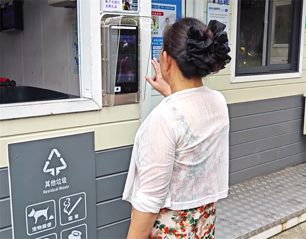 居民将打包好的垃圾拿到小区的垃圾分类亭,在终端机上简单的刷脸或输入手机号进行用户登录自己的分类账号。