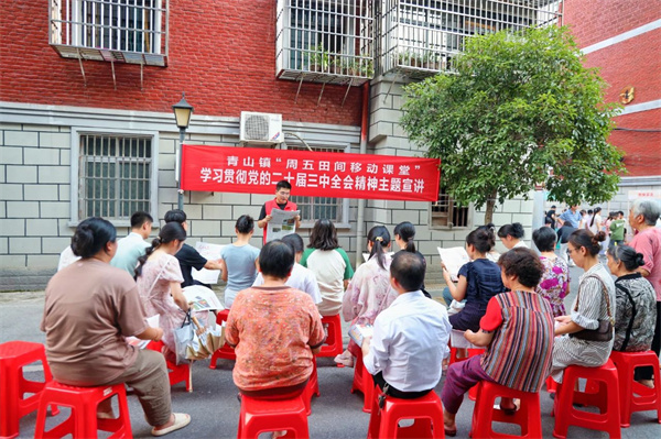 为推动党的二十届三中全会精神深入人心,更好地用党的二十届三中全会统一思想、凝聚共识,青山镇“周五田间移动课堂”来到新建社区开展党的二十届三中全会精神专题宣讲活动。