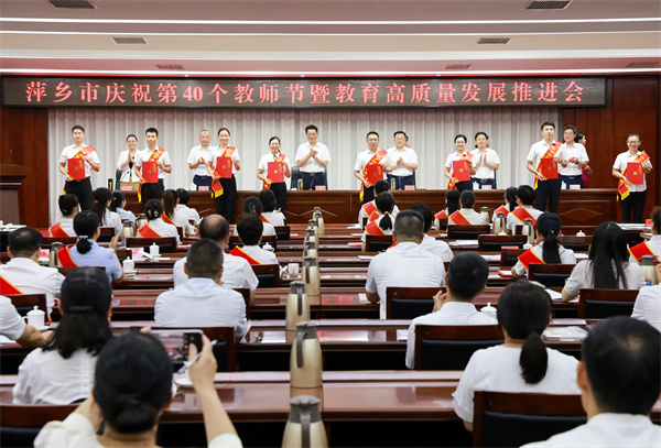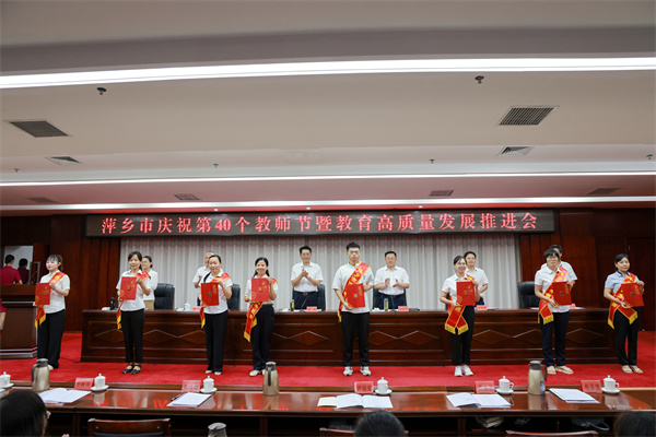 9月9日,全市庆祝第40个教师节暨教育高质量发展推进会召开。市委书记刘烁出席会议并讲话。他强调,要深入学习贯彻党的二十届三中全会精神和习近平总书记关于教育工作的重要论述,持续深化教育综合改革,加快建设高质量教育体系,努力培育造就更多高素质人才,办好人民满意的教育,推进教育强市建设行稳致远,为全力打造产业转型升级标杆城市提供坚实支撑。市委副书记鲍峰庭主持会议。市领导杨博、苏建军、朱艳珍,萍乡学院党委书记邱晓辉出席。