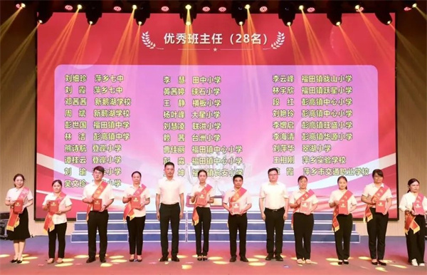 近年来,经开区广大教师和教育工作者牢记为党育人、为国育才的初心使命,在各自岗位上辛勤耕耘,涌现出一大批先进典型,今年新增9名省级学科带头人和骨干教师,福田镇中杨思逸老师入选全国乡村优秀青年教师培养奖励计划,登岸小学周晓妍老师被评为全国“啦啦操推广大使”,光丰小学党支部书记叶应徵获评2024年度“新时代赣鄱先锋”之“一心为民好支书”荣誉称号。还有刘凤等13名“萍乡市优秀教师”、孙维莉等7名“萍乡市优秀班主任”、郑欣等5名“萍乡市先进教育工作者”,易钰君等66名“经开区优秀教师”、刘细珍等28名“经开区优秀班主任”、刘思等25名“经开区先进教育工作者”。会上,与会领导向受表扬的教师代表颁发了荣誉证书,并送上了经久不息的热烈掌声,表达了对兢兢业业奉献于教育事业的教师们的祝贺,同时也激励着他们在岗位上继续奉献自己的光和热,创造更加辉煌的成就。