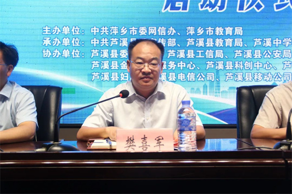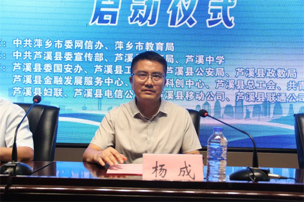 9月10日,萍乡市第十一届“国家网络安全宣传周”校园日暨芦溪县第十一届“国家网络安全宣传周”活动在芦溪县正式启动。市委网信办副主任杨成,市委教育工委委员、市教育局副局长肖国华,县委常委、宣传部部长樊喜军等出席启动仪式。