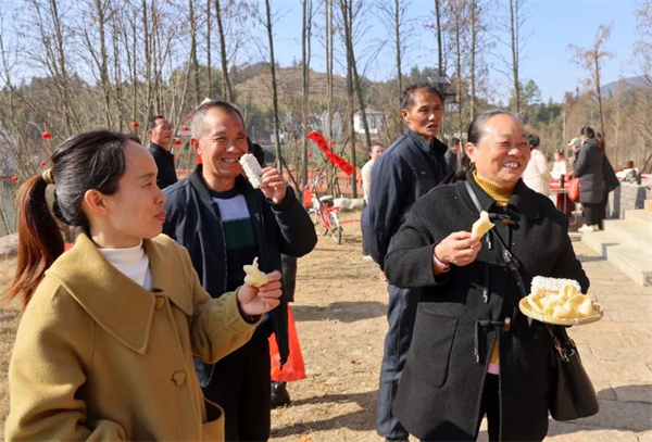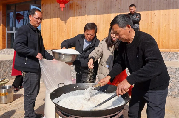 在忙碌的间隙,楼下村党支部书记何清明感慨地说:“看着楼溪湖的美景,吃着刚出锅的冻米糖,我们村今年的过年氛围真是格外浓厚。”