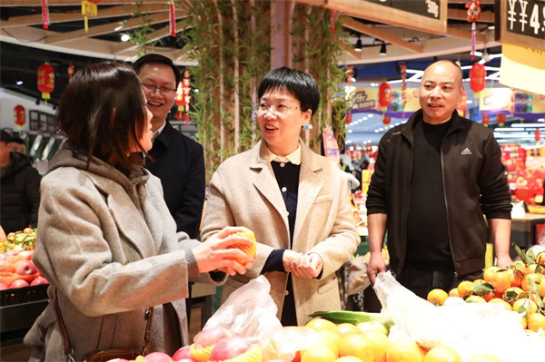 春节前夕,年味正浓。惠联超市、欧玛优鲜内,处处人流如织、商品琳琅满目,春节氛围浓厚。郑锐与商户、群众亲切交谈,仔细询物价、问销量,详细了解商品储备供应、价格变化等情况,并鼓励商户紧紧抓住春节黄金消费时段,充分挖掘消费热点和增长点,千方百计丰富优质商品供给,营造浓厚节日氛围、消费氛围。郑锐还要求各商户在做好稳价保供和食品安全工作的同时,抓实抓牢场所管理,及时消除各类风险隐患,从而确保节日期间市场货丰价稳、群众消费安心舒心。