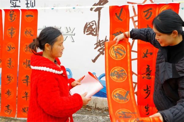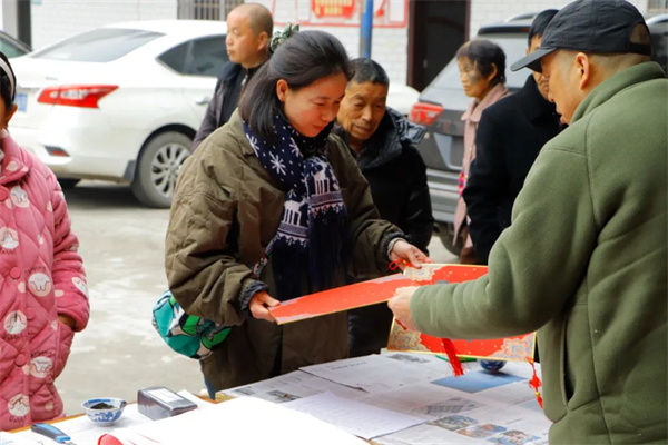 活动现场,村民们络绎不绝,他们或驻足观赏书法家的创作过程,或挑选心仪的春联,脸上洋溢着幸福的笑容。崇源村村民刘阿姨感慨地说:“这样的活动真是太好了,不仅让我们感受到了传统文化的魅力,更让我们在新年前夕收获了一份来自党和政府的温暖。”