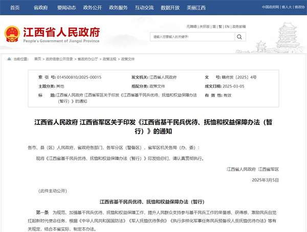 事关基干民兵优待、抚恤和权益保障!江西最新印发