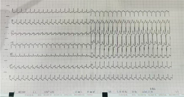 心电图示:阵发性室上性心电过速