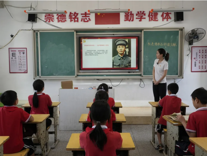 “卢德铭叔叔,我们每天都笑得很开心,能安心读书、自在玩耍,这样的好生活,真希望您能亲眼看一看……”在“给先烈的一封信”环节,学生周雨欣趴在课桌上,用铅笔一笔一画地写着。教室里静悄悄的,20个孩子的信纸上,写着“卢德铭叔叔,我们每天都笑得很开心,能安心读书”“我们抗战胜利了”。这些稚嫩的文字,通过AI技术转化为语音,输入到烈士“虚拟形象”的数据库中。当屏幕上的“卢德铭”开口回应:“孩子,见字如面。你们笔下的安稳生活,正是我们当年浴血奋战的初心。好好学习,未来的中国就交给你们了”时,教室后排传来细微的抽鼻子声,几个孩子悄悄抹了抹眼角,红色的感动在这一刻直抵心底。