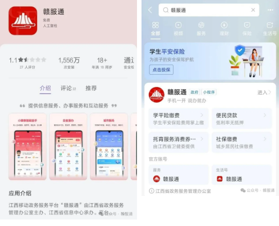 1.在应用市场下载“赣服通”APP或在支付宝中搜索“赣服通”小程序进入平台。