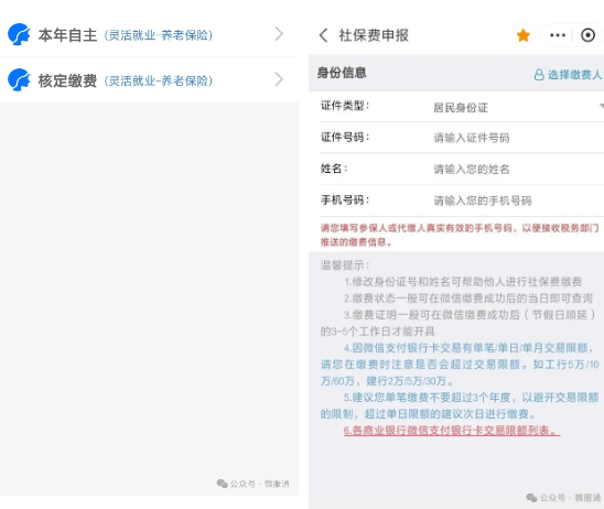 3.按实际情况,选择本年自主缴费,输入身份信息,点击下一步,按页面提示完成缴费。