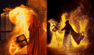 来自河南确山的非遗打铁花传承人们也在此刻显得特别有魅力