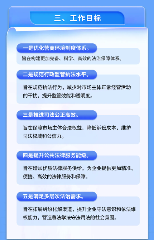 1.落实营商环境法律法规。贯彻落实《民营经济促进法》《江西省优化营商环境条例》《江西省中小企业促进条例》等国家和省有关法律法规。从市场主体保护、市场环境打造、政务服务提升到监管执法规范等多维度,全面保障各类市场主体依法平等使用生产要素、公平参与市场竞争,全方位为企业发展保驾护航。(牵头单位:市发改委,责任单位:市工信局、市市监局)