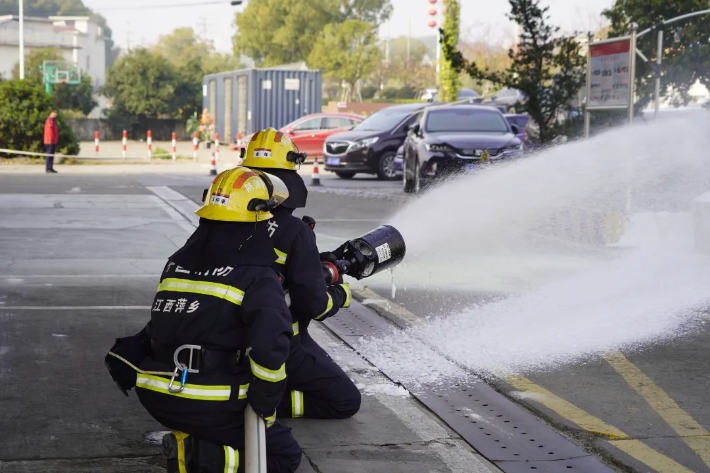 加油站负责人第一时间切断站内总电源,随即拨打119火警电话及应急管理部门值班电话,清晰报备火情位置、火势规模与现场核心情况。县消防救援大队接警后火速出动,救援人员抵达现场即刻开展火情侦查,结合模拟火情科学部署力量,利用高压水枪精准开展灭火作业,高效处置险情。
