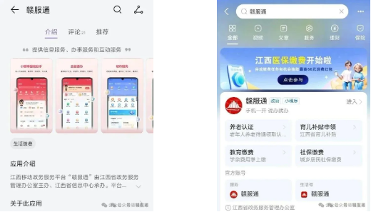 1.在应用市场下载“赣服通”APP或在支付宝搜索“赣服通”小程序进入平台。