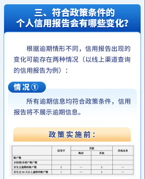 “之前用卡习惯不好,经常忘记还款,留下了好几笔逾期记录,导致办理信用卡、消费贷款都受影响。听说元旦起信用一次性修复政策实施了,在网上查了下,发现那几笔逾期记录果然不见了,感谢央行的好政策。”1月1日,市民胡先生发现,自己信用报告上的逾期记录真的“消失”了。