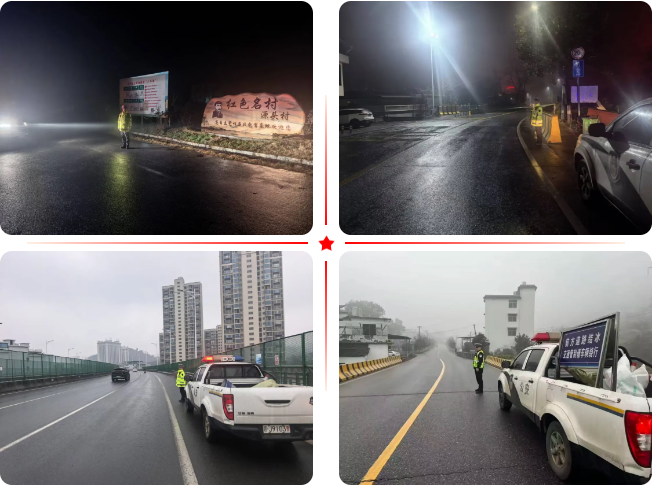 ▲青山交警中队在全镇主次干道、村口弯道等值守