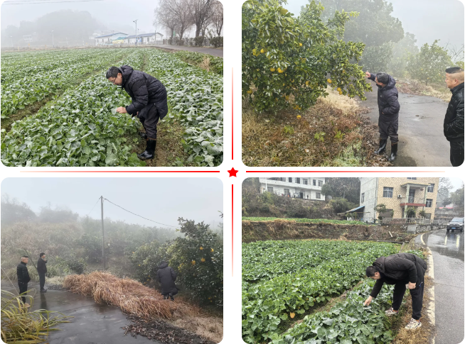 ▲青山镇经济发展办公室农业农村岗查看农作物受灾情况