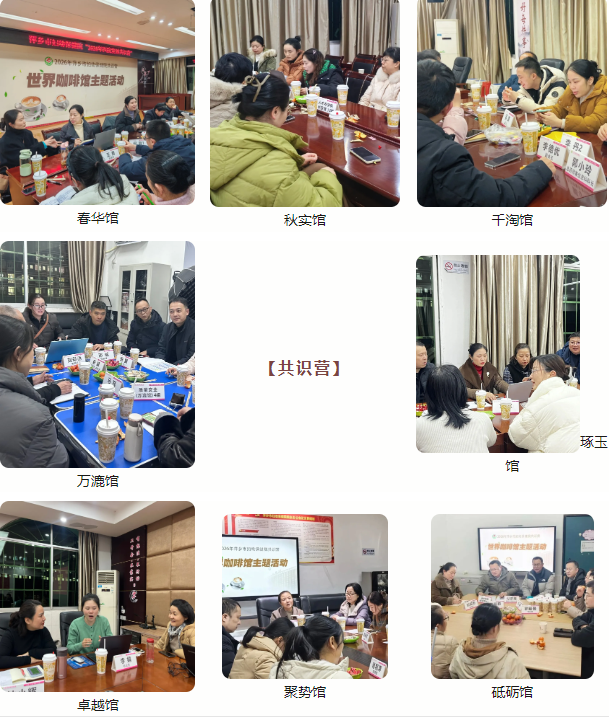第二阶段为分组讨论及成果汇报环节。在“春华馆”“秋实馆”“千淘馆”“万漉馆”“琢玉馆”“卓越馆”“聚势馆”“砥砺馆”8个“研讨咖啡馆”中,与会人员组队轮转交流,围绕四大策略主题展开多轮头脑风暴。伴随着浓浓的咖啡香,大家群情激荡、建言献策。