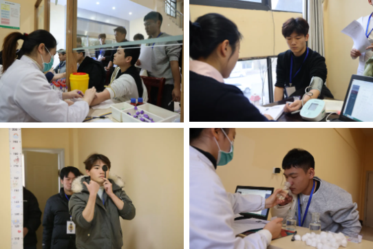 早上7点,体检工作已在县人民医院有序展开。应征青年们精神抖擞,在工作人员引导下有序编组,依次进行信息核对、登记,并接受血检、内科、外科、眼科、听力等多项科目的全面检查。