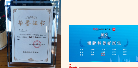 近日,由中国医院协会指导,中央广播电视总台中国交通广播、云听客户端主办的“2025科普好医生、科普好医院主题发布活动”在北京举办。我院凭借在健康科普领域的持续深耕、创新实践与民生实效,成功摘得 “2025银牌科普好医院” 称号,我院万芳医师以专业易懂的传播风格与扎实的科普实绩,获评 “银牌2025科普好医生”。