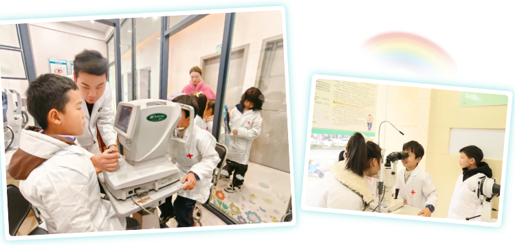 在眼科“明亮双眼小卫士”体验区,视光师通过动画与眼球模型,为孩子们讲解眼睛的奥秘与近视防控知识。“小白医生”们认真练习简易视力检测方法,学习规范的眼保健操,并在“护眼姿势大比拼”中积极纠正不良读写姿势,树立起“保护视力,从小做起”的意识。